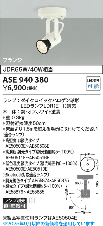 〔適合ランプ〕●高照度 非調光タイプ AE50503E~AE50508E●高演色 調光タイプ(調光範囲約5~100%)AE50511E~AE50516E●低色温度 調光タイプ(調光範囲約5~100%)AE50509E・AE50510E