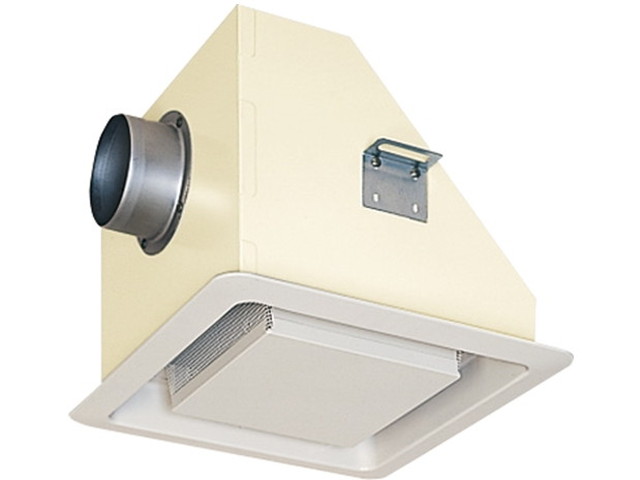 水平な屋外軒下天井面に給排気口として取付けて使用するフードです。