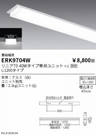 デザインベースライト L:1200 半埋込タイプ 連結端用