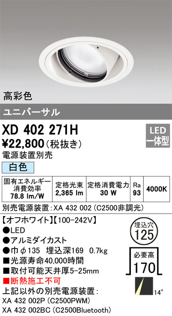 XD402271H(オーデリック) 商品詳細