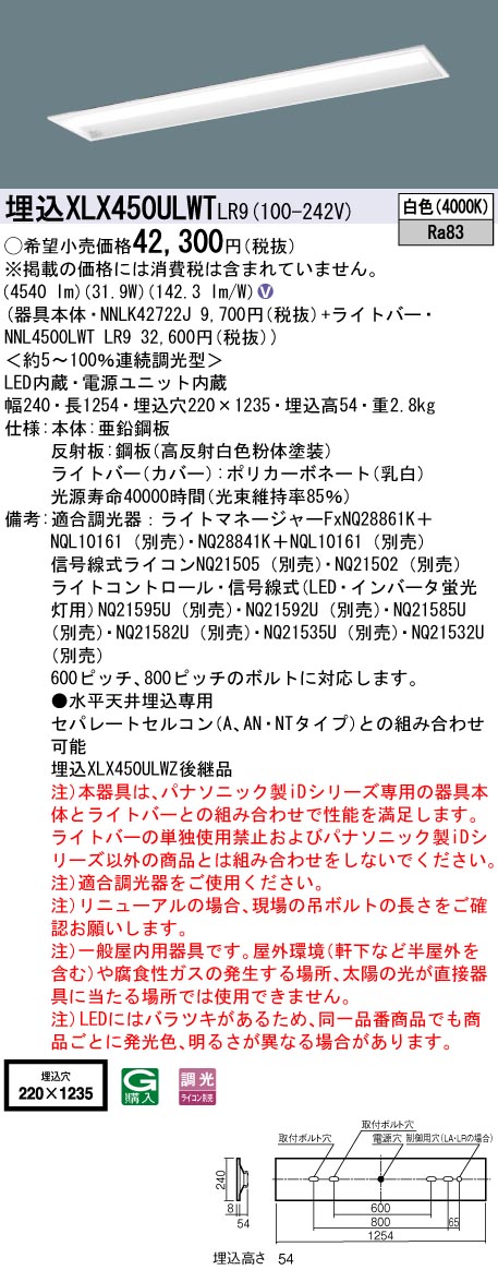 XLX450ULWTLR9(パナソニック) 商品詳細