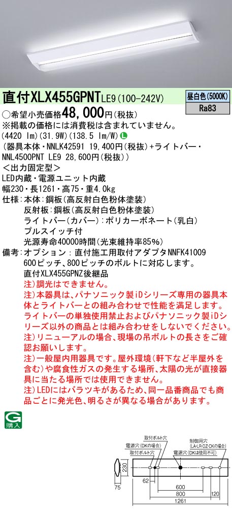 XLX455GPNTLE9(パナソニック) 商品詳細