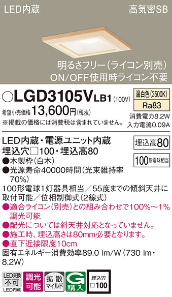 LGD3105VLB1(パナソニック) 商品詳細