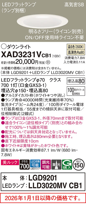 XAD3231VCB1(パナソニック) 商品詳細