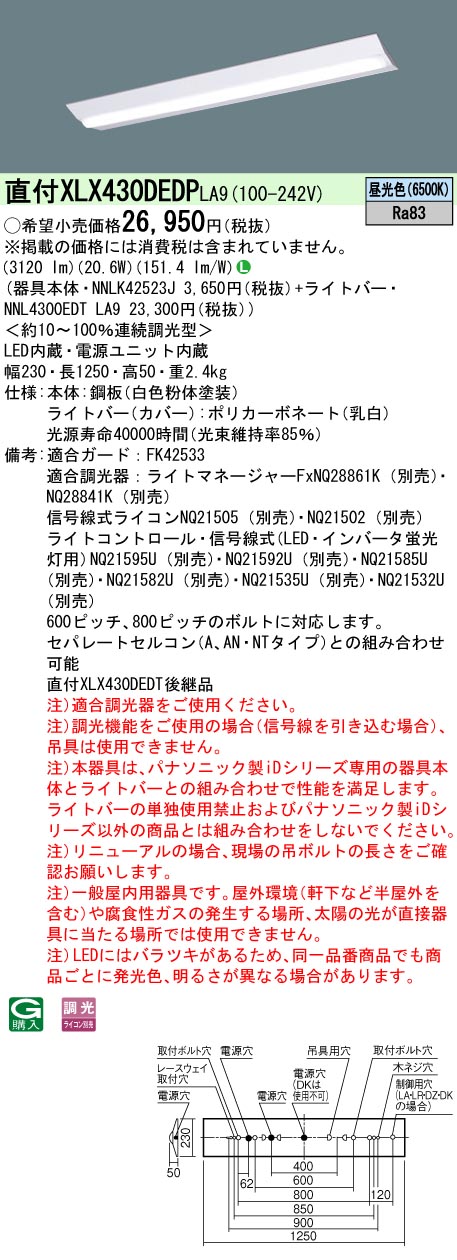 XLX430DEDPLA9(パナソニック) 商品詳細