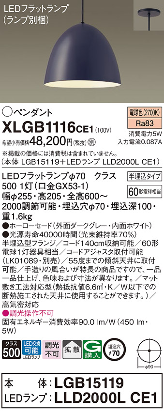 XLGB1116CE1(パナソニック) 商品詳細