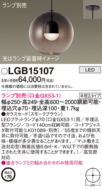 吊下型 LED ペンダント ガラスセードタイプ・半埋込タイプ