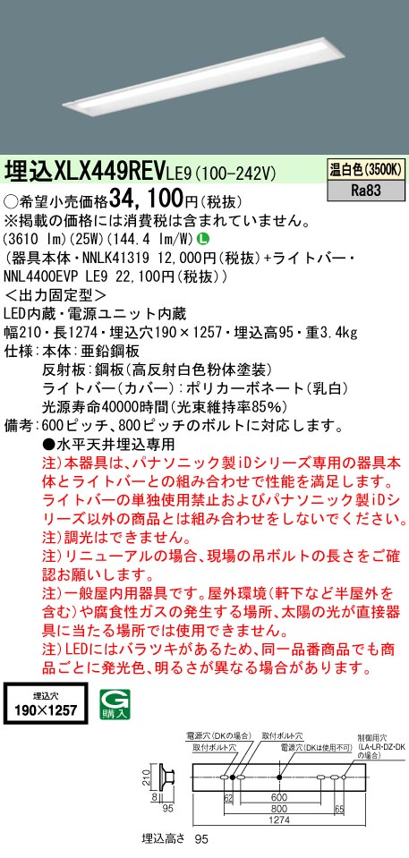 XLX449REVLE9(パナソニック) 商品詳細