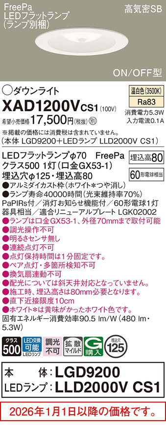 XAD1200VCS1(パナソニック) 商品詳細