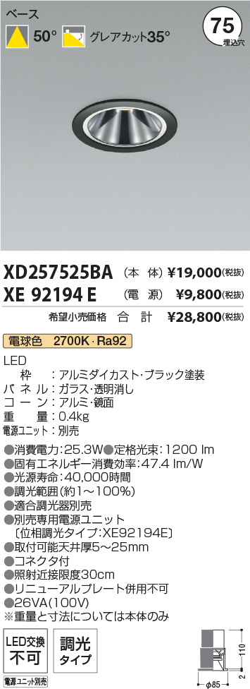 XD257525BA-XE92194E(コイズミ照明) 商品詳細