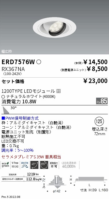 ERD7576W-RX367NA(遠藤照明) 商品詳細