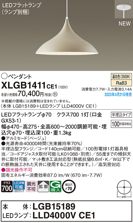 XLGB1411CE1(パナソニック) 商品詳細
