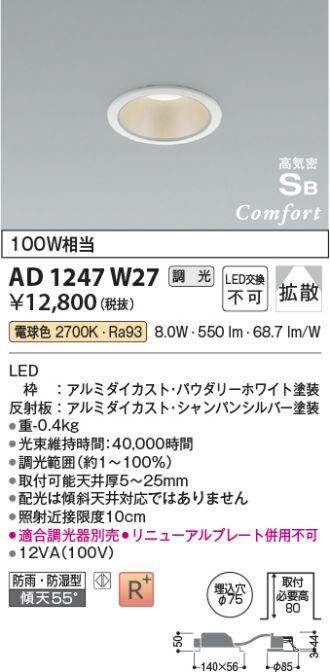 AD1247W27(コイズミ照明) 商品詳細