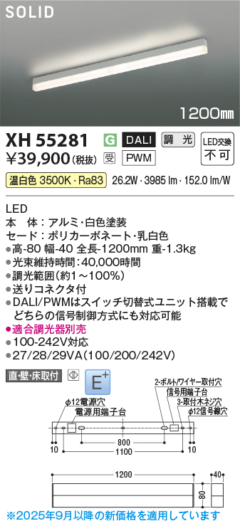 異なるメーカー調光器や推奨されていない調光器でご使用された場合、不点灯や点滅などの不具合症状が出る可能性がございます。