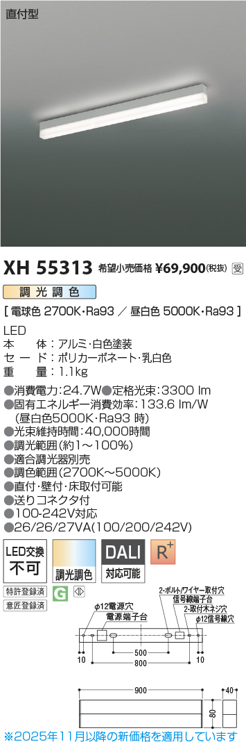 異なるメーカー調光器や推奨されていない調光器でご使用された場合、不点灯や点滅などの不具合症状が出る可能性がございます。