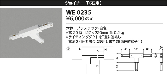 ●ライティングダクトをT型に連結し、電源を引込む場合に使用します(電源速結端子付)