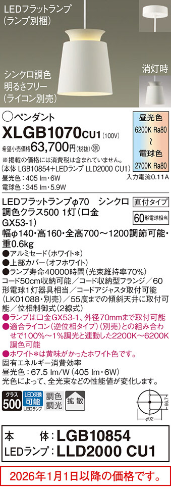 XLGB1070CU1(パナソニック) 商品詳細