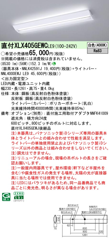 XLX405GEWCLE9(パナソニック) 商品詳細