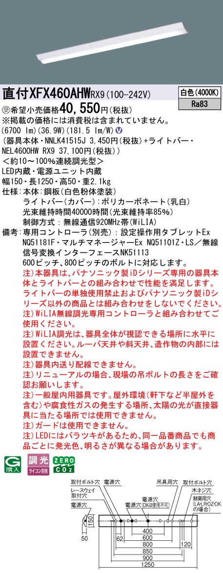 ◆注)本器具は、パナソニック製iDシリーズ専用の器具本体とライトバーとの組み合わせで性能を満足します。ライトバーの単独使用禁止およびパナソニック製iDシリーズ以外の商品とは組み合わせをしないでください。