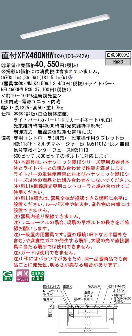 ◆注)本器具は、パナソニック製iDシリーズ専用の器具本体とライトバーとの組み合わせで性能を満足します。ライトバーの単独使用禁止およびパナソニック製iDシリーズ以外の商品とは組み合わせをしないでください。