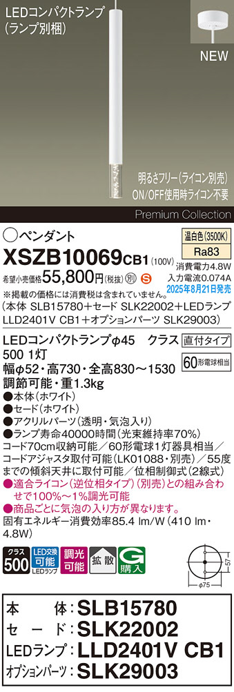 天井吊下型 LED(温白色) ペンダント 拡散タイプ・直付タイプ LEDコンパクトランプ交換型・調光タイプ(ライコン別売) 白熱電球60形1灯器具相当(SLB15780+SLK22002+LLD2401VCB1+SLK29003)