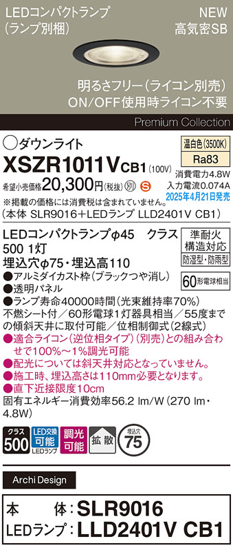 XSZR1011VCB1(パナソニック) 商品詳細