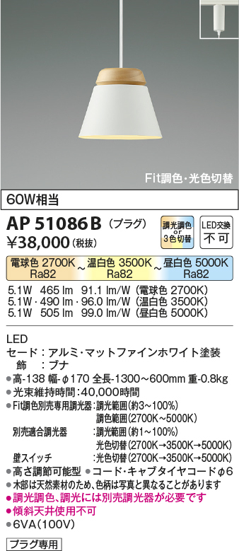 ●Fit調色別売専用調光器:調光範囲(約3~100%)・調色範囲(2700K~5000K)別売適合調光器:調光範囲(約1~100%)・光色切替(2700K→3500K→5000K)壁スイッチ:光色切替(2700K→3500K→5000K)