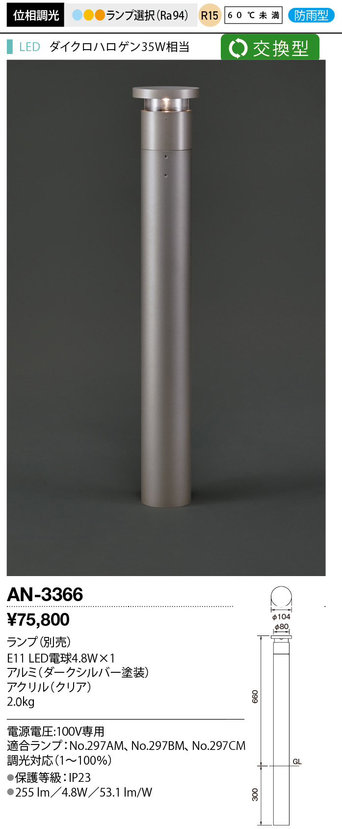 寸法:セード幅φ104mm・ポール幅φ80mm・高660mm・埋込深300mm